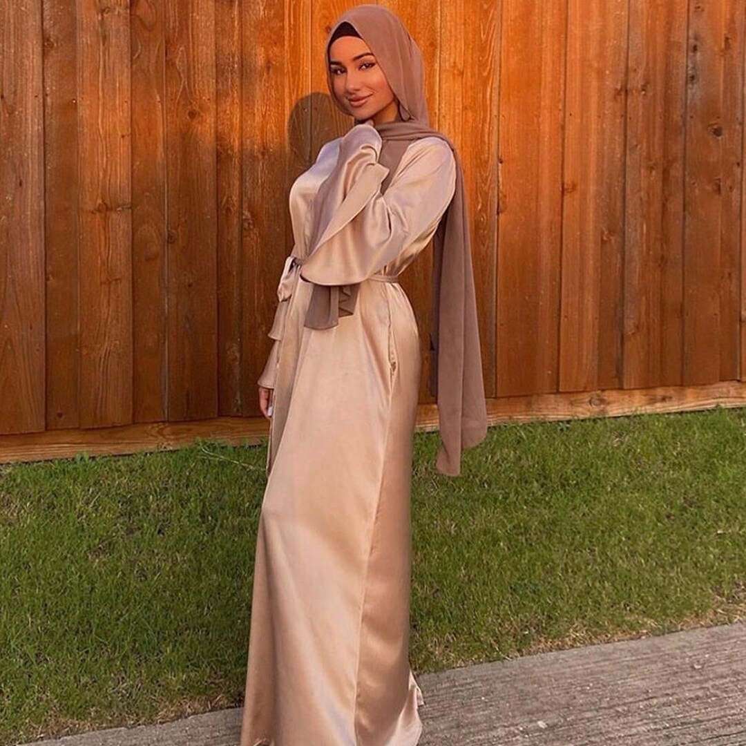 Satin Long Dress With Hijab For Women Caftan Islamic Muslim Etsy Israel